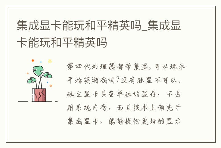 集成顯卡能玩和平精英嗎_集成顯卡能玩和平精英嗎