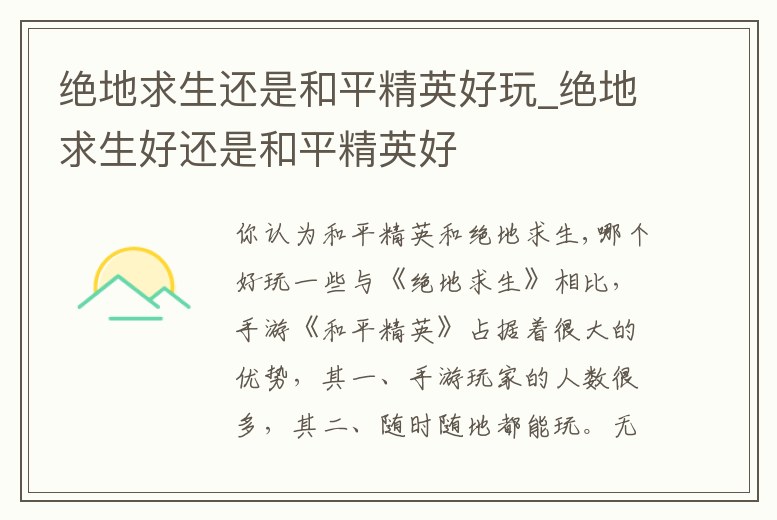 絕地求生還是和平精英好玩_絕地求生好還是和平精英好