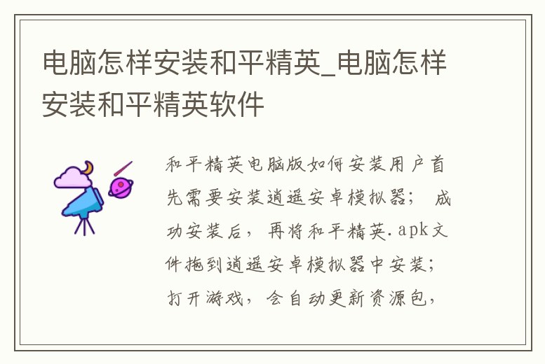 電腦怎樣安裝和平精英_電腦怎樣安裝和平精英軟件