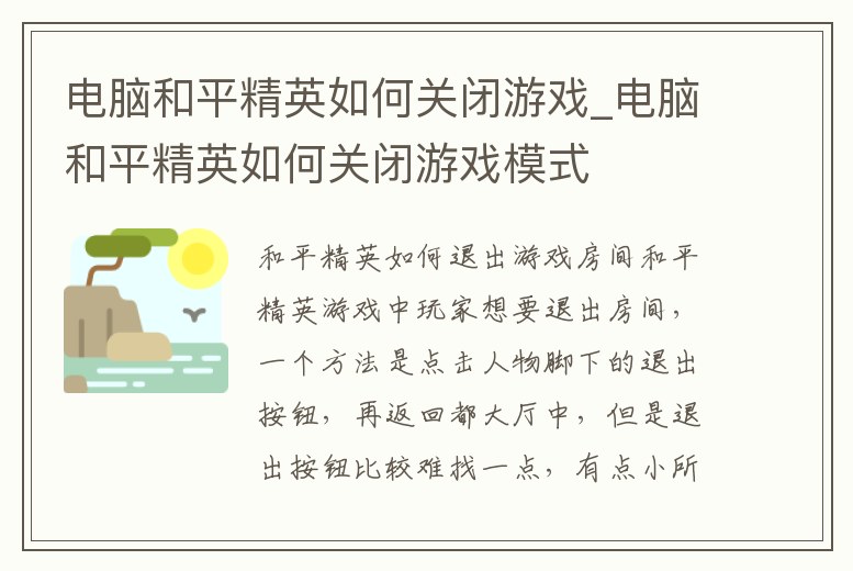 電腦和平精英如何關(guān)閉游戲_電腦和平精英如何關(guān)閉游戲模式