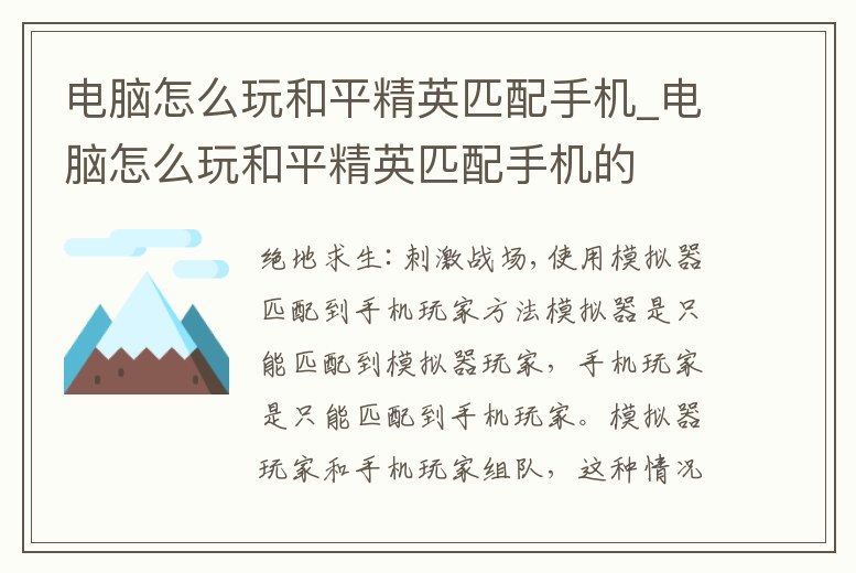 - 電腦怎么玩和平精英匹配手機(jī)_電腦怎么玩和平精英匹配手機(jī)的