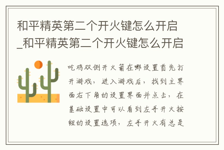 - 和平精英第二個開火鍵怎么開啟_和平精英第二個開火鍵怎么開啟不了