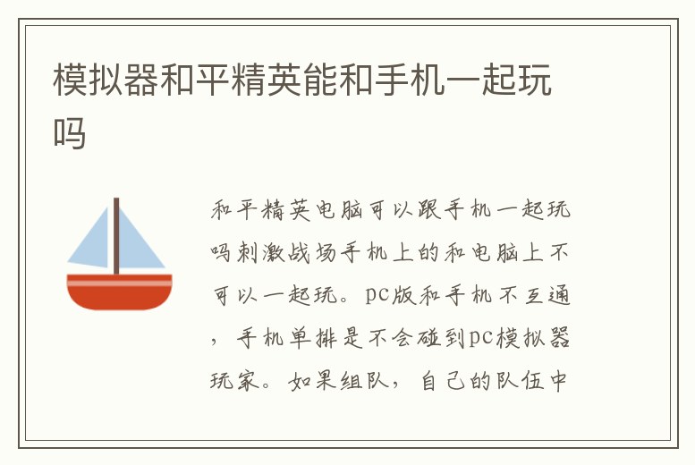 刺激戰場手機上的和電腦上的可以一起玩。需要注意的是:手機玩家和模擬器電腦玩家共有一個排行榜。電腦版和手機不互通,手機單排是不會碰到電腦模擬器玩家。如果組隊,自己的隊伍中有模擬器玩家,就會匹配到模擬。