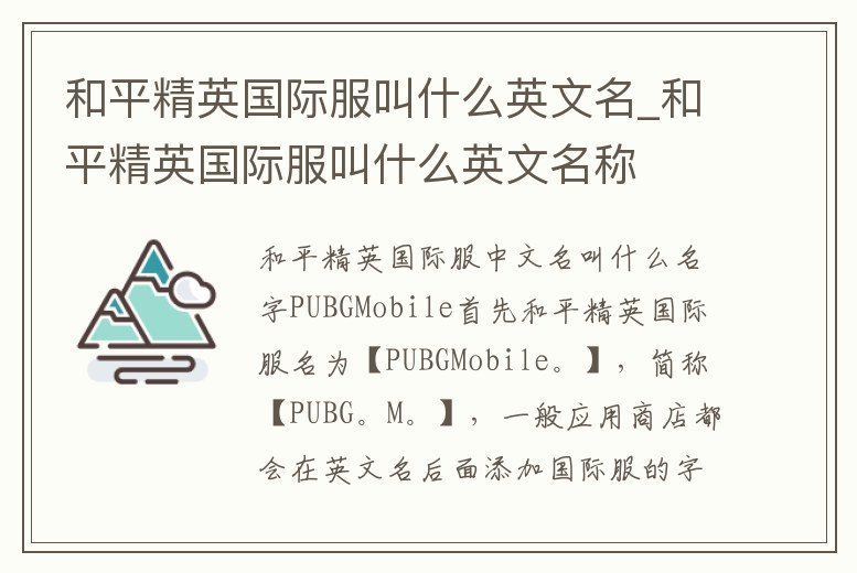 和平精英國際服叫什么英文名_和平精英國際服叫什么英文名稱