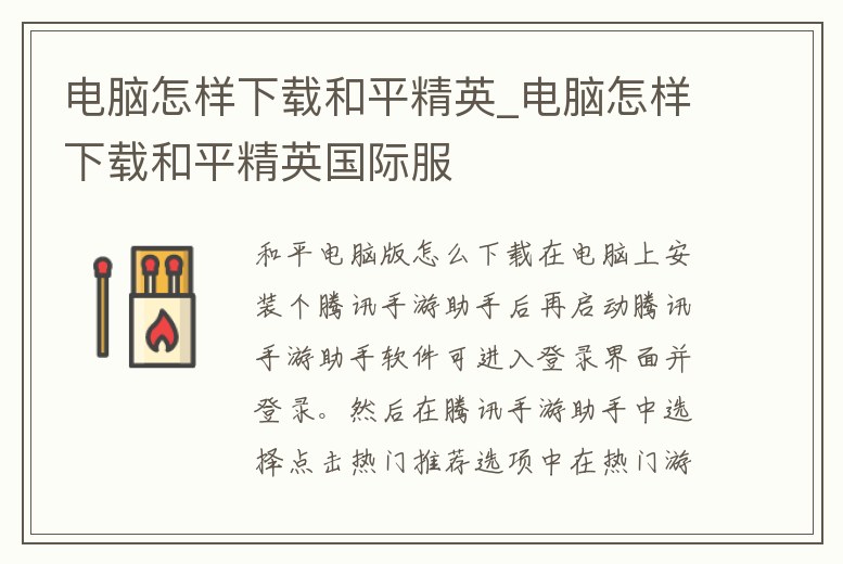 電腦怎樣下載和平精英_電腦怎樣下載和平精英國際服