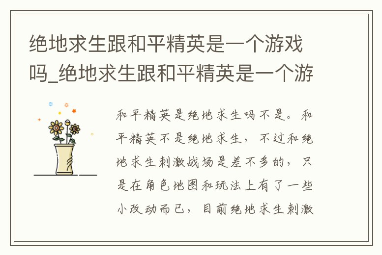 - 絕地求生跟和平精英是一個(gè)游戲嗎_絕地求生跟和平精英是一個(gè)游戲嗎知乎