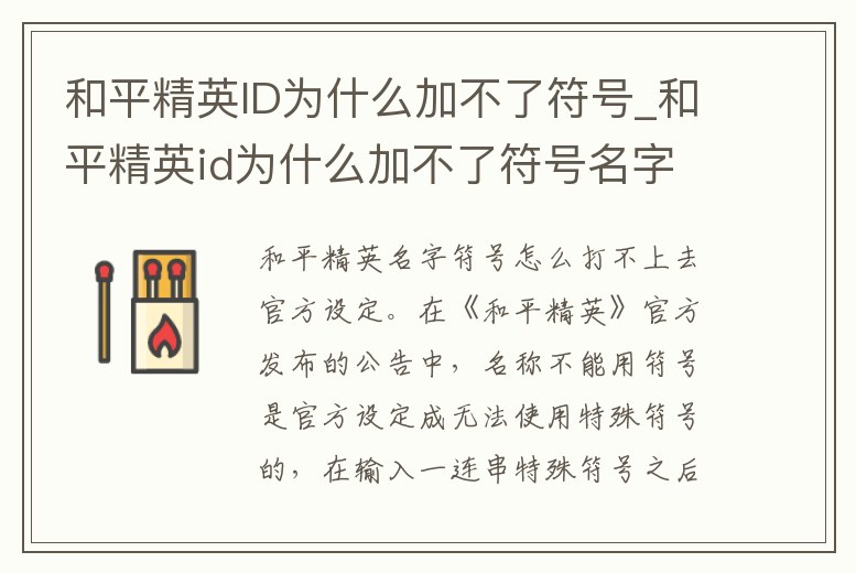 和平精英ID為什么加不了符號_和平精英id為什么加不了符號名字