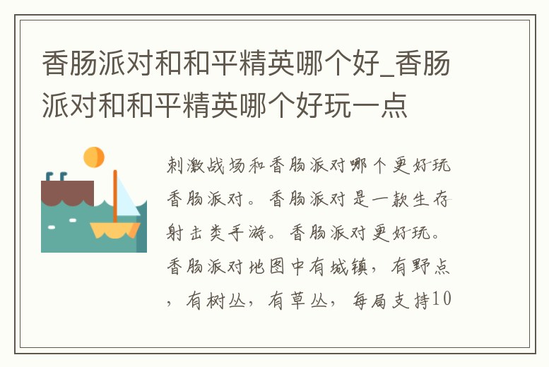 香腸派對和和平精英哪個好_香腸派對和和平精英哪個好玩一點