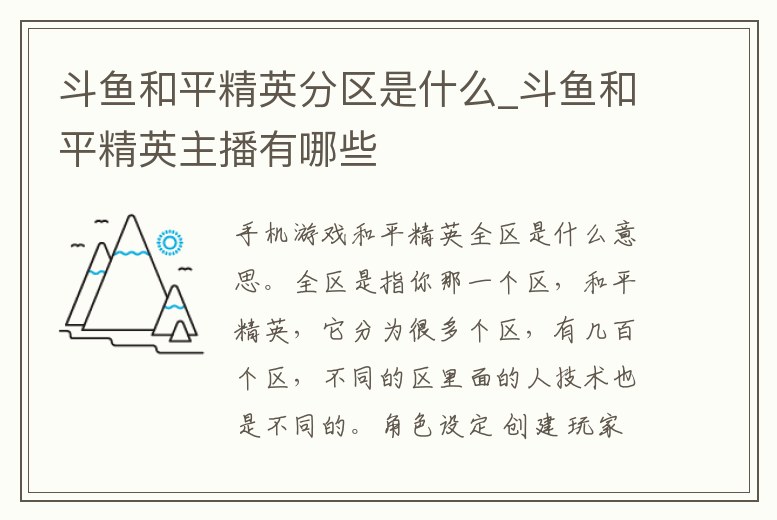 斗魚和平精英分區是什么_斗魚和平精英主播有哪些