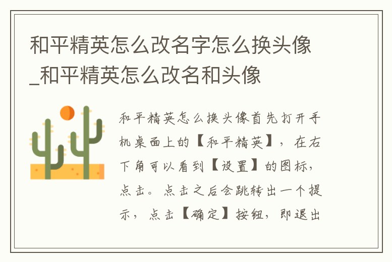 和平精英怎么改名字怎么換頭像_和平精英怎么改名和頭像