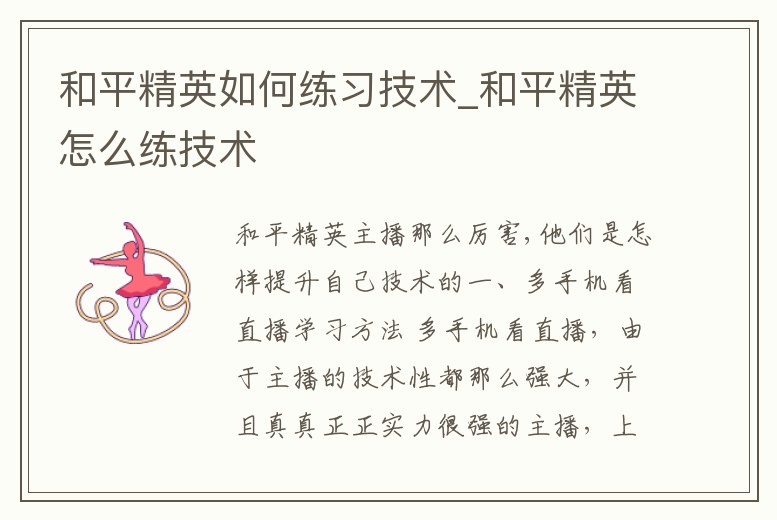 - 和平精英如何練習(xí)技術(shù)_和平精英怎么練技術(shù)