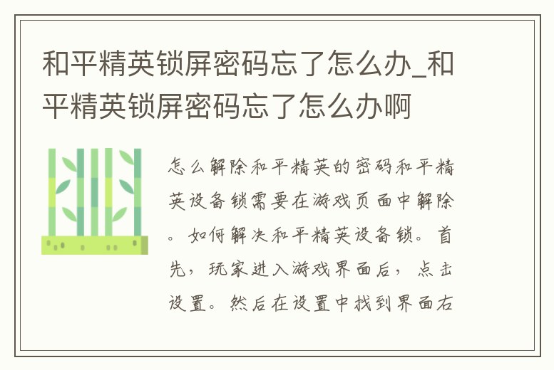 - 和平精英鎖屏密碼忘了怎么辦_和平精英鎖屏密碼忘了怎么辦啊