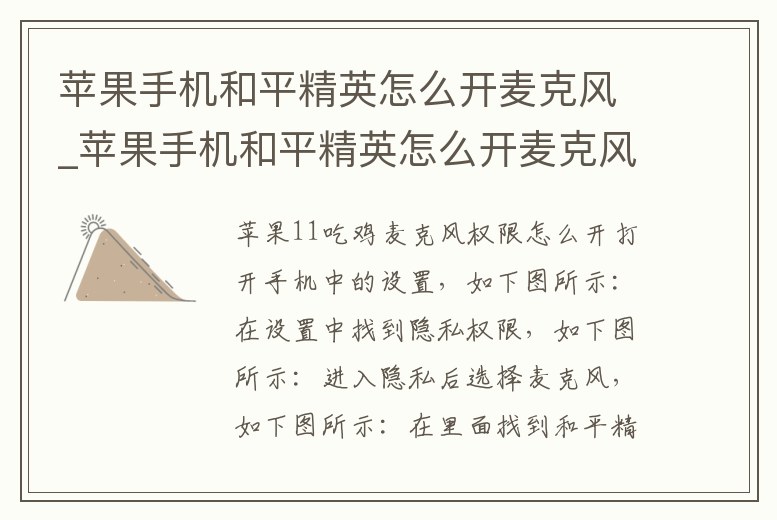 - 蘋果手機和平精英怎么開麥克風_蘋果手機和平精英怎么開麥克風聲音