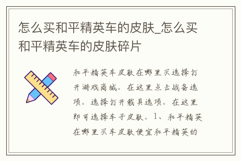 怎么買和平精英車的皮膚_怎么買和平精英車的皮膚碎片