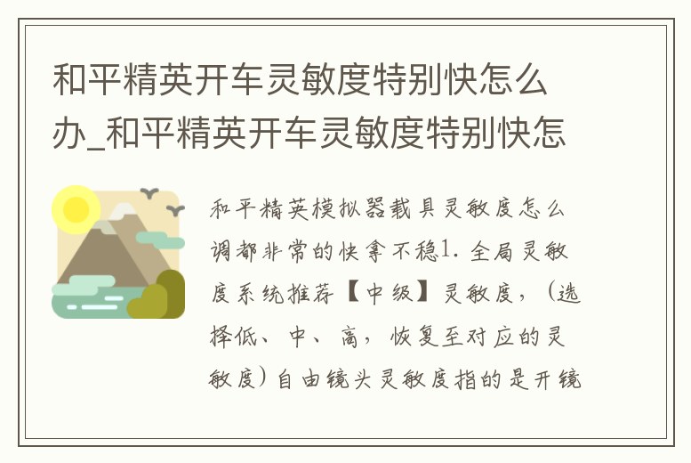 和平精英開車靈敏度特別快怎么辦_和平精英開車靈敏度特別快怎么辦呀