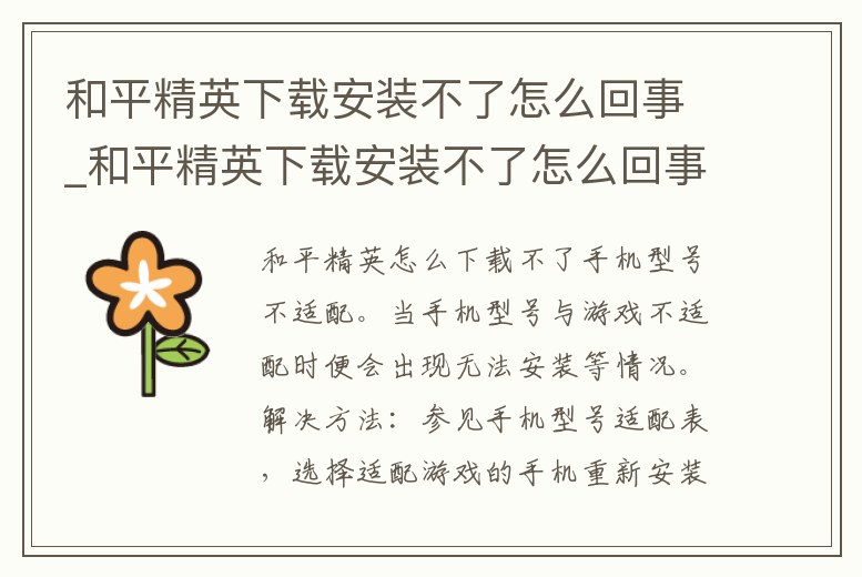 和平精英下載安裝不了怎么回事_和平精英下載安裝不了怎么回事視頻