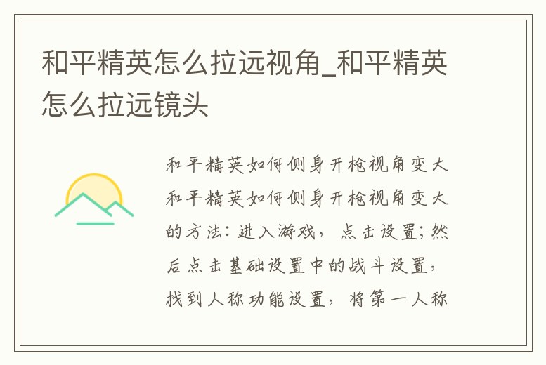 和平精英怎么拉遠視角_和平精英怎么拉遠鏡頭