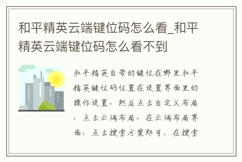 和平精英云端鍵位碼怎么看_和平精英云端鍵位碼怎么看不到