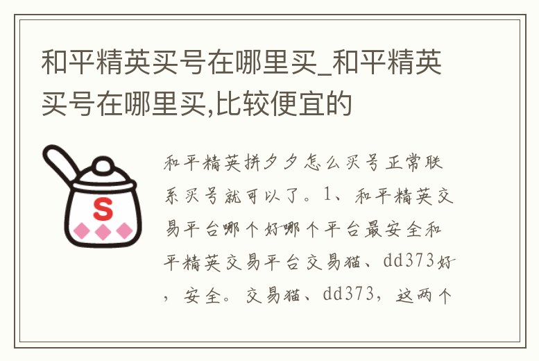 和平精英拼夕夕怎么買號正常聯系買號就可以了。1、和平精英交易平臺哪個好哪個平臺最安全和平精英交易平臺交易貓、dd373好,安全。交易貓、dd373,這兩個平臺算是比較安全的,專門去這里進行交易,直接進行賬號的交易,或者是瑪莎拉蒂皮膚的交易,有對應的交易流程,可以把錢給到平臺這里,等交易確認之后,平臺自然會給。2、和平精英淘