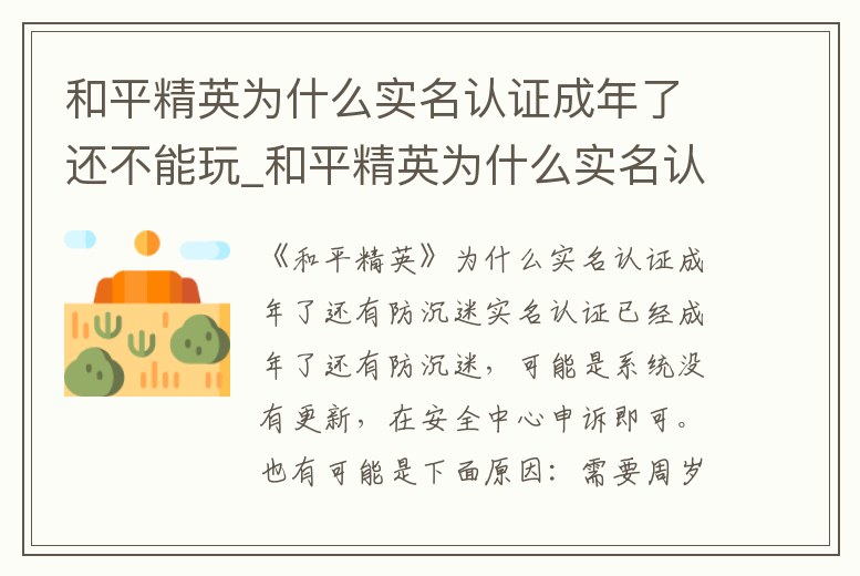 - 和平精英為什么實名認證成年了還不能玩_和平精英為什么實名認證成年了還不能玩游戲