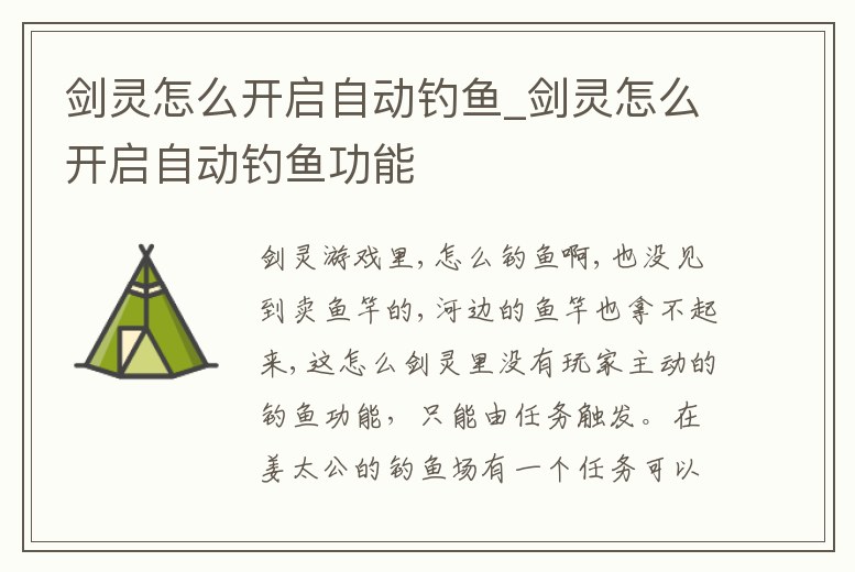 劍靈怎么開啟自動釣魚_劍靈怎么開啟自動釣魚功能