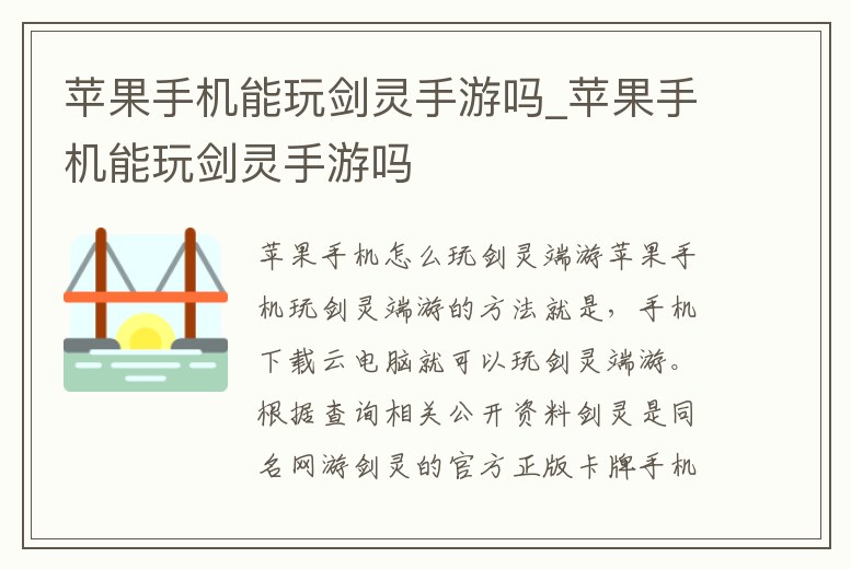 蘋果手機能玩劍靈手游嗎_蘋果手機能玩劍靈手游嗎