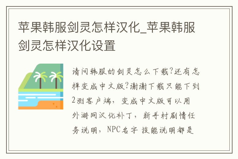 蘋果韓服劍靈怎樣漢化_蘋果韓服劍靈怎樣漢化設置