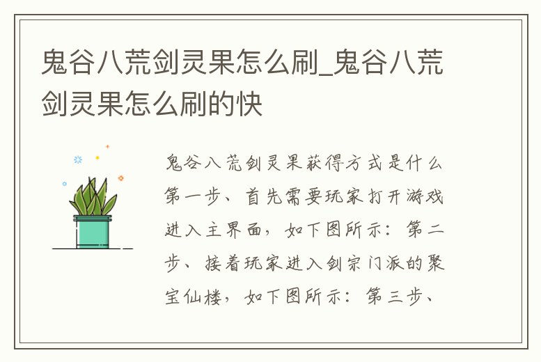 鬼谷八荒劍靈果怎么刷_鬼谷八荒劍靈果怎么刷的快