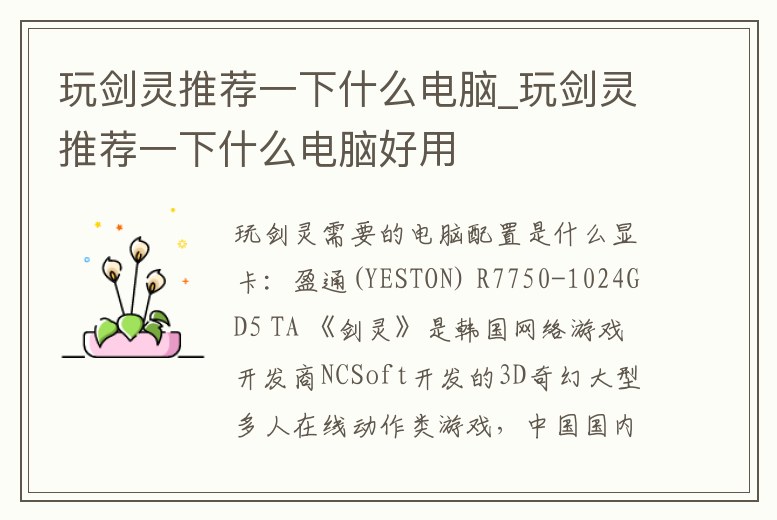 玩劍靈推薦一下什么電腦_玩劍靈推薦一下什么電腦好用