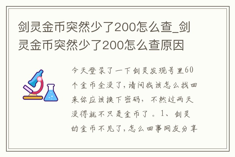 - 劍靈金幣突然少了200怎么查_劍靈金幣突然少了200怎么查原因