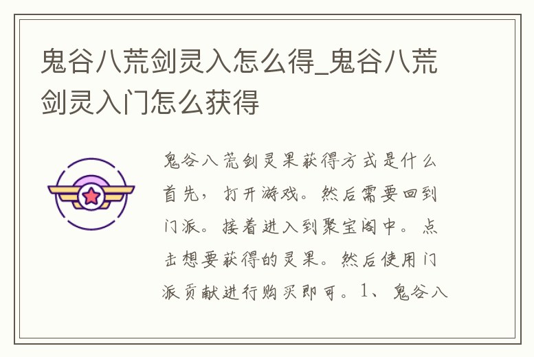 - 鬼谷八荒劍靈入怎么得_鬼谷八荒劍靈入門怎么獲得