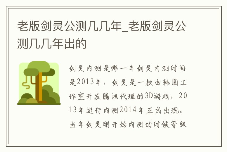 老版劍靈公測幾幾年_老版劍靈公測幾幾年出的