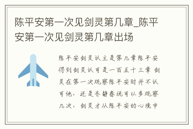 陳平安第一次見劍靈第幾章_陳平安第一次見劍靈第幾章出場