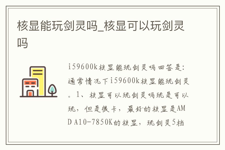 回答是:通常情況下i59600k核顯能玩劍靈。