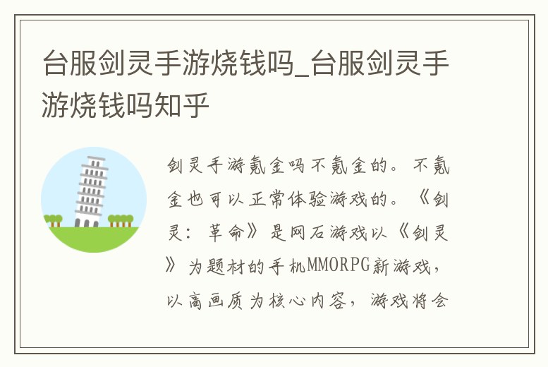 臺服劍靈手游燒錢嗎_臺服劍靈手游燒錢嗎知乎