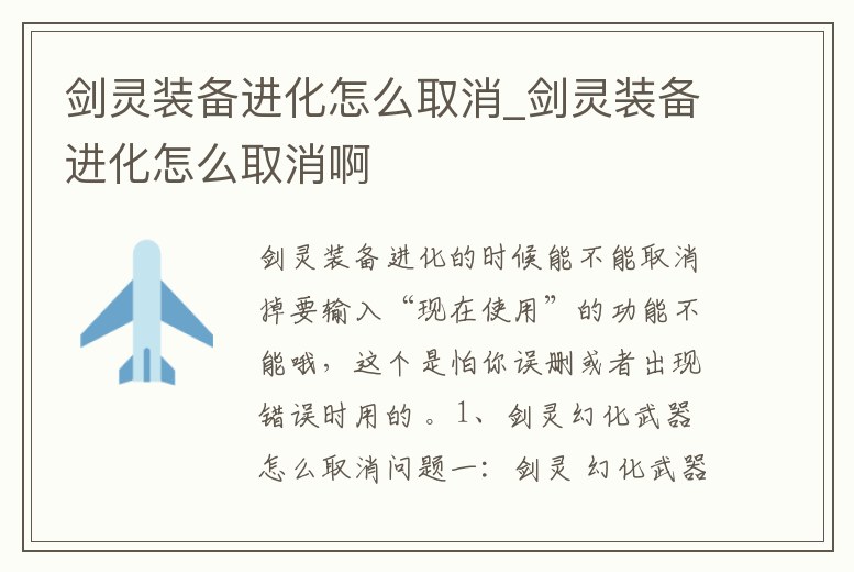劍靈裝備進化怎么取消_劍靈裝備進化怎么取消啊