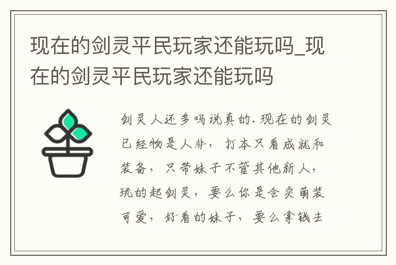 現在的劍靈平民玩家還能玩嗎_現在的劍靈平民玩家還能玩嗎