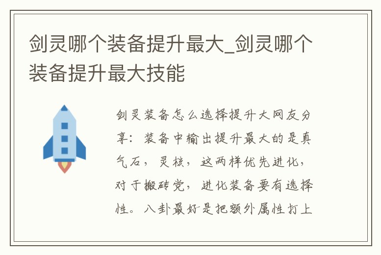 劍靈哪個裝備提升最大_劍靈哪個裝備提升最大技能
