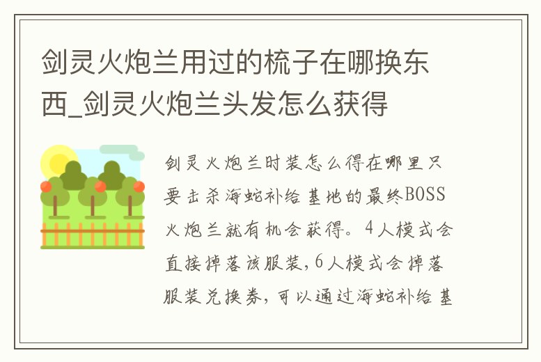 劍靈火炮蘭用過的梳子在哪換東西_劍靈火炮蘭頭發(fā)怎么獲得