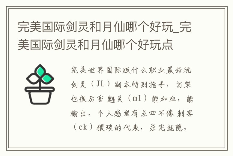 完美國際劍靈和月仙哪個好玩_完美國際劍靈和月仙哪個好玩點