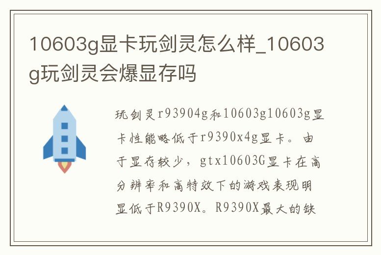 10603g顯卡玩劍靈怎么樣_10603g玩劍靈會爆顯存嗎