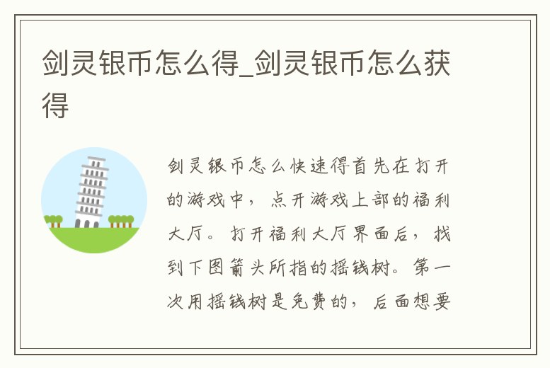 劍靈銀幣怎么得_劍靈銀幣怎么獲得