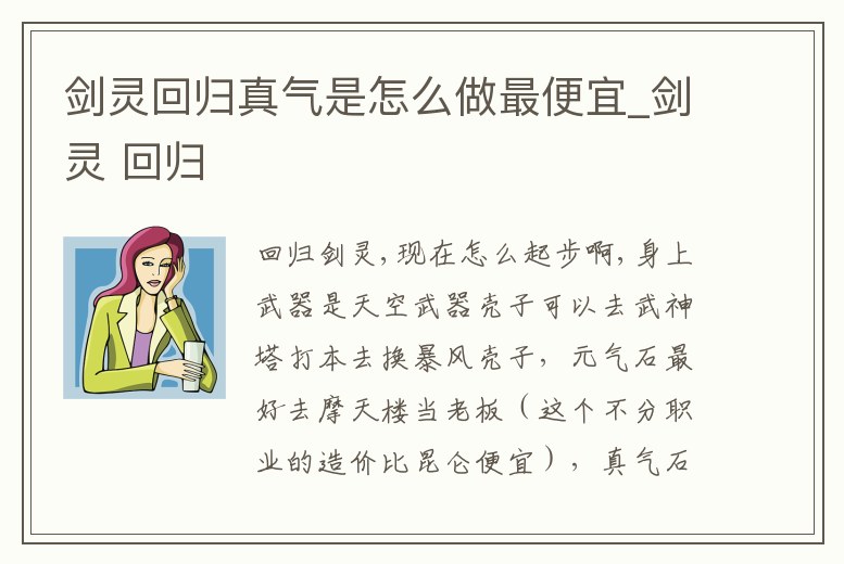 劍靈回歸真氣是怎么做最便宜_劍靈 回歸