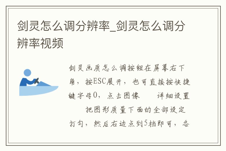 劍靈怎么調分辨率_劍靈怎么調分辨率視頻