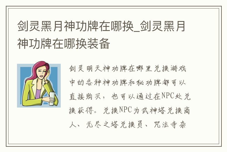 劍靈黑月神功牌在哪換_劍靈黑月神功牌在哪換裝備