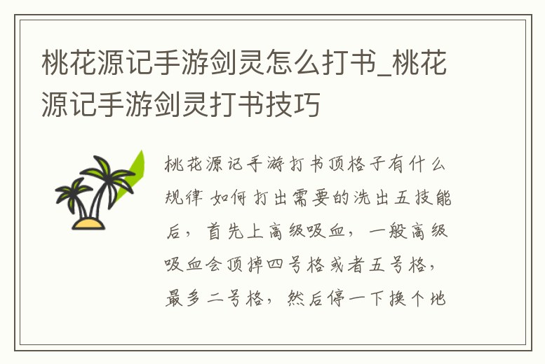 桃花源記手游劍靈怎么打書_桃花源記手游劍靈打書技巧
