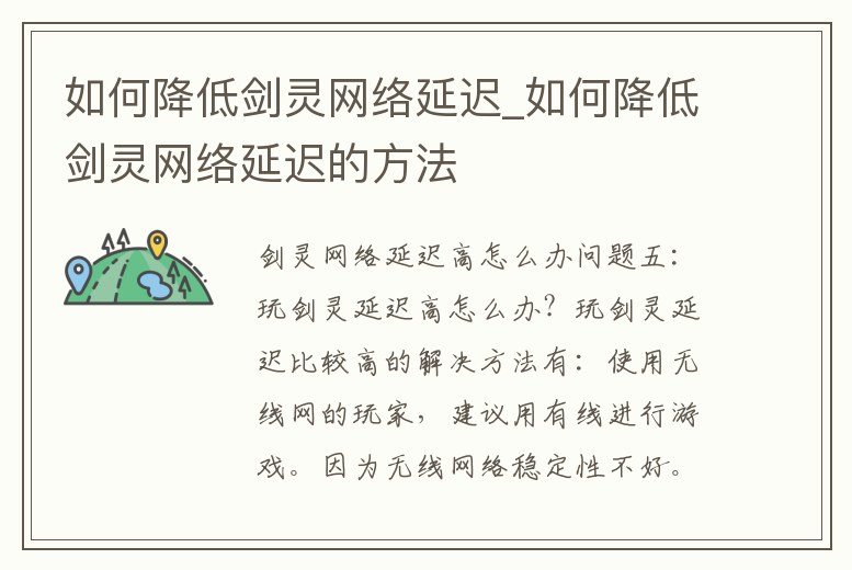 問題五:玩劍靈延遲高怎么辦? 玩劍靈延遲比較高的解決方法有:使用無線網的玩家,建議用有線進行游戲。因為無線網絡穩定性不好。網絡質量不好,這也是會導致游戲延遲增加的。可以更換網絡或者升級帶寬解決。游戲服。