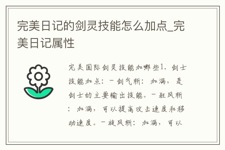完美日記的劍靈技能怎么加點_完美日記屬性