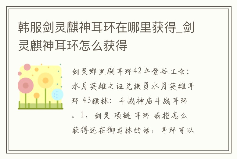 - 韓服劍靈麒神耳環(huán)在哪里獲得_劍靈麒神耳環(huán)怎么獲得