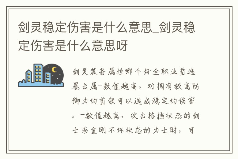劍靈穩(wěn)定傷害是什么意思_劍靈穩(wěn)定傷害是什么意思呀